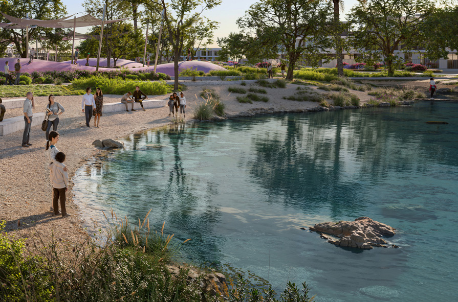 Landscaped parks, playgrounds, and open spaces for outdoor living